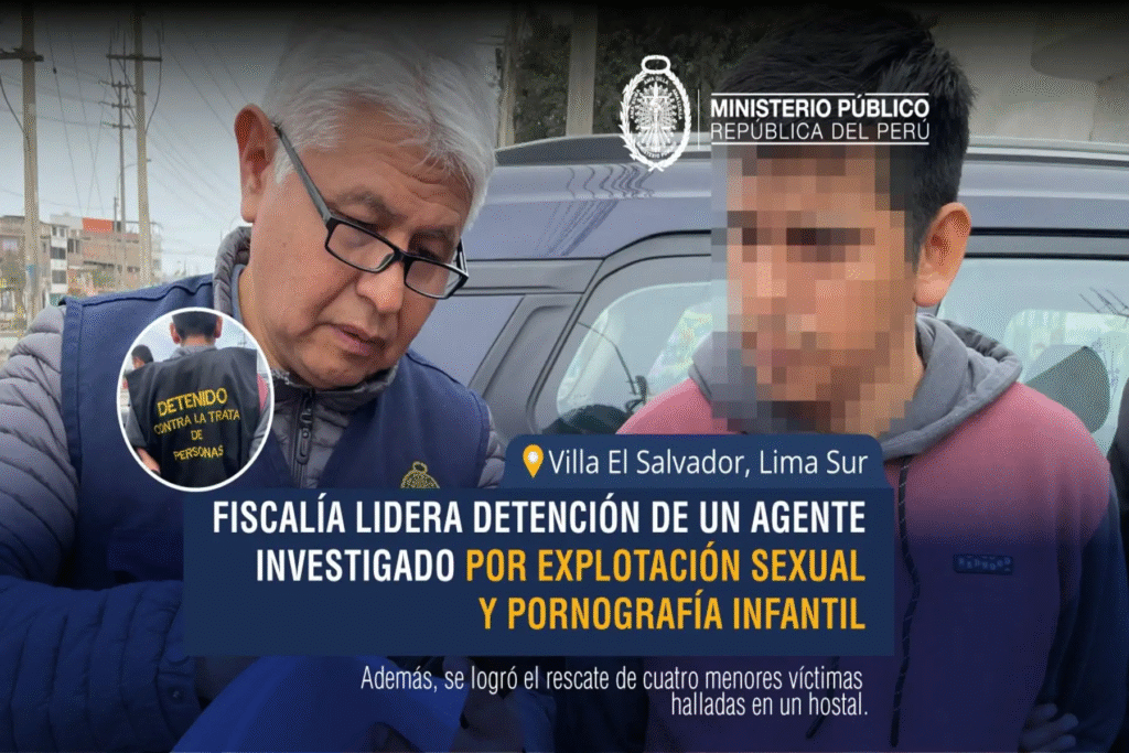 En un operativo conjunto, personal de la Fiscalía, la Policía Nacional y el departamento de Seguridad Nacional de Estados Unidos (HSI, por sus siglas en inglés), detuvo a Gerardo Chunga Z., investigado por los presuntos delitos de explotación sexual de menores y pornografía infantil agravada, y rescató a cuatro adolescentes.