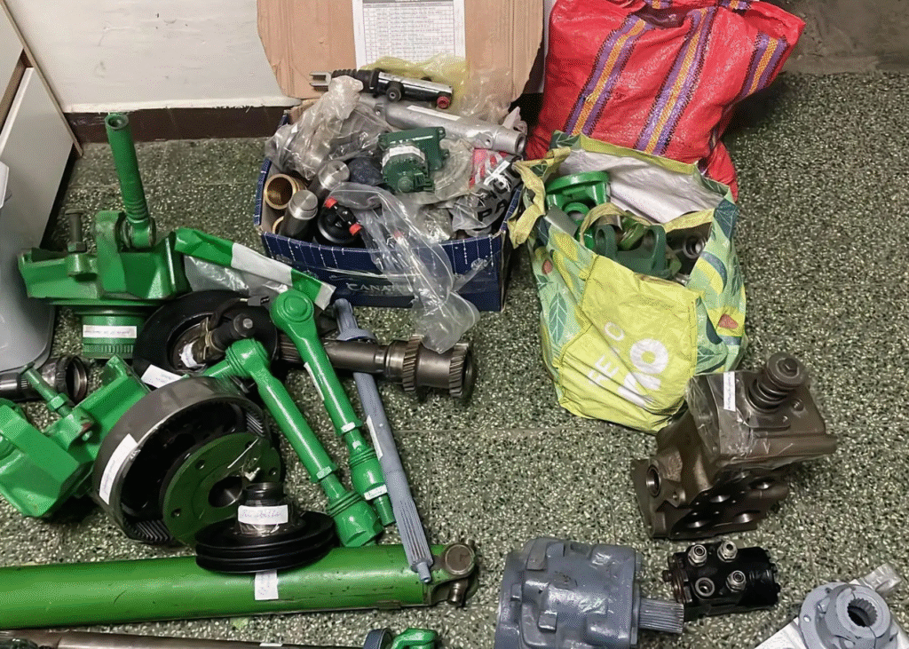 En total fueron 292 repuestos de maquinaria pesada, además de tensor de correa, válvula termostato, cilindros, fajas de caucho y cono, marcas John Deere y Massey Ferguson, eslinga plana de 3” x 5m, marca Ton Anister Jorvex y el vehículo KIA Soluto, color negro, placa T8B-471.
