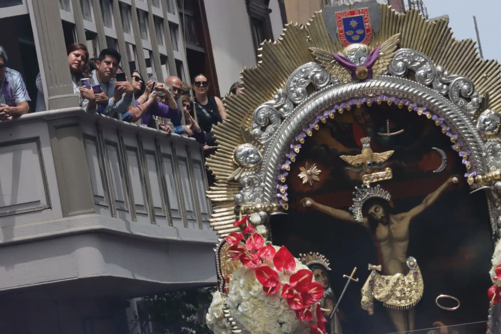 Esta manifestación religiosa, surgida a mediados del siglo XVII, está asociada con terremotos en Lima. La imagen del Cristo Morado permaneció en pie tras los fuertes sismos de 1655 y 1687, consolidando la fe de sus devotos.