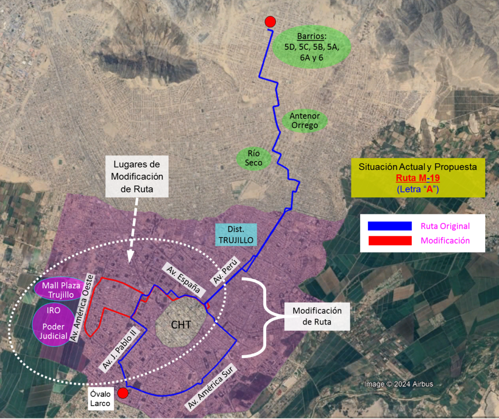 La propuesta para su nueva ruta es solo para una parte de su recorrido en el distrito de Trujillo, desde el cruce de avenida España con avenida Perú, hasta América Oeste.
