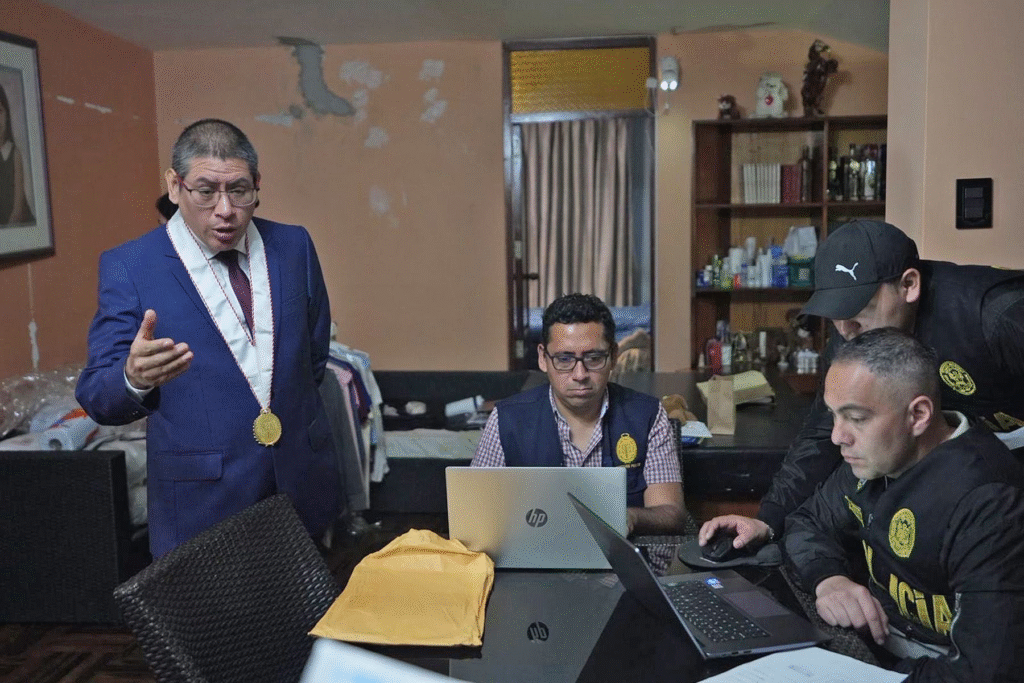 La diligencia está a cargo del fiscal provincial Reynaldo Abia Arrieta, y un equipo de cinco fiscales adjuntos, quienes también incautaron equipos electrónicos, teléfonos celulares y dinero en efectivo.