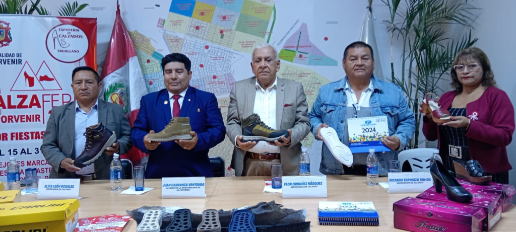 En un esfuerzo conjunto por reactivar la economía del sector cuero y calzado, el alcalde de El Porvenir, Juan Carranza Ventura, y un grupo de empresarios de cuero y calzado, liderado por Elías León Rosales, está mañana lanzaron la Calzaferia de El Porvenir 2024 en el marco de las fiestas patrias que se desarrollará del 15 al 31 de julio en la Av. Pumacahua cuadras 12 y 13.