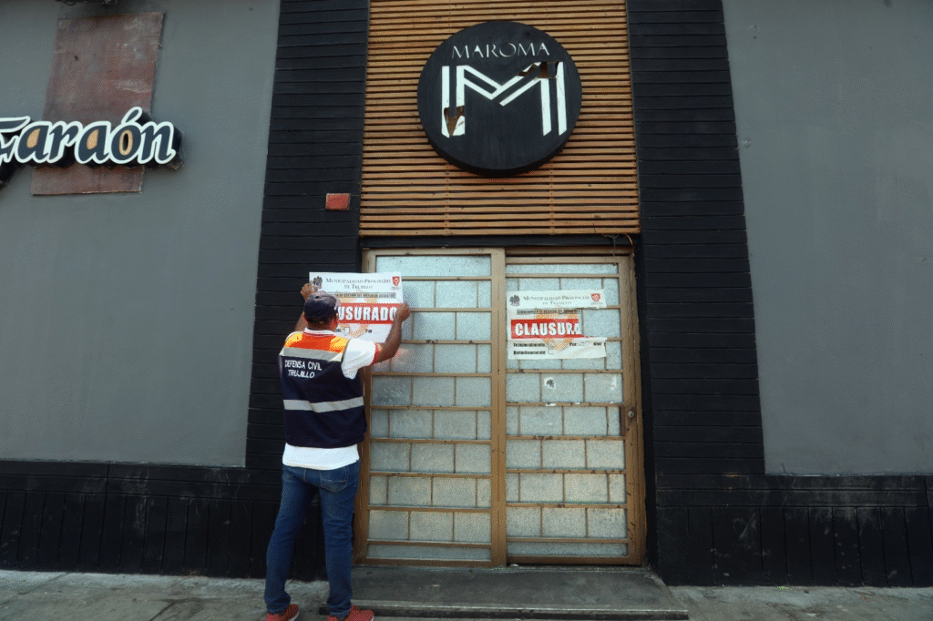 Haciendo respetar las normas que rigen el ordenamiento de la ciudad y siguiendo los procedimientos del caso, la Municipalidad Provincial de Trujillo (MPT) clausuró varios locales nocturnos de diversión que de manera reiterativa infringían la normatividad vigente, ocasionando alborotos y molestias en los vecinos.